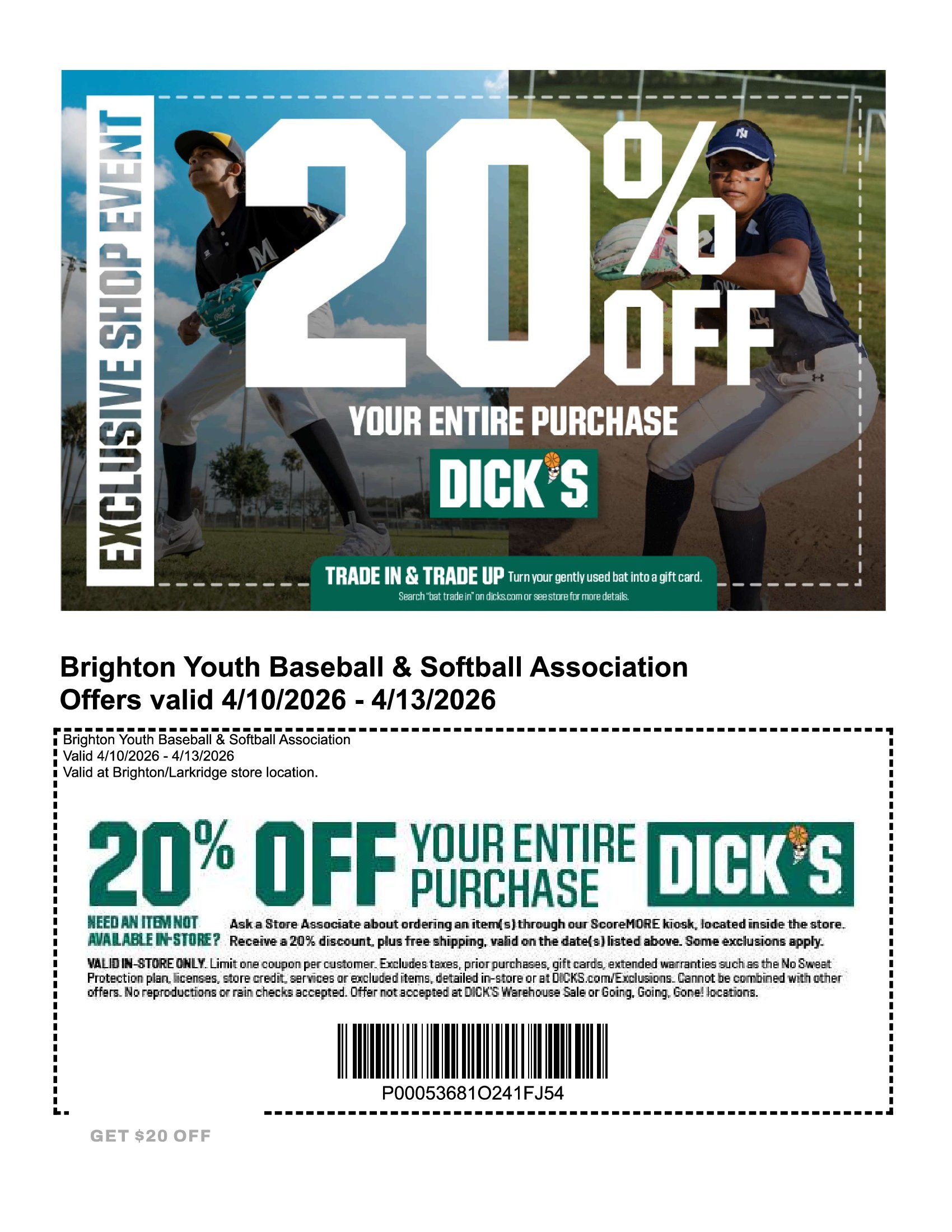 2026 BYBSA Dick's Sporting Good Every Day Coupon Link - https://cmm.dickssportinggoods.com/crmcdn/getoffer.aspx?offer_entity_code=O241FJ4Y&token=zfzN625V7Mwa7jx1VxMAK5DP64M1z7k26ITsUHVTgqreBIJLr0jzNUxABqvGHpXa9ocINBDStCKdMH0aJ57Tg2